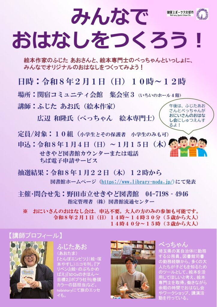 あおたまさんと僕がおはなし会を開催します。