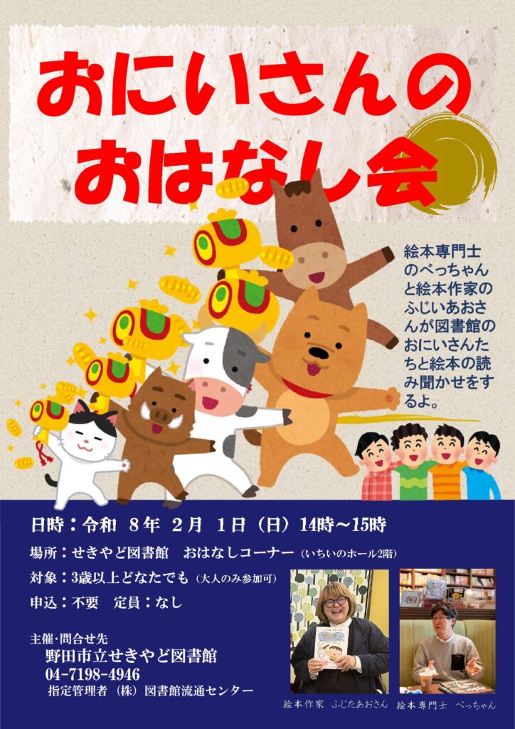 令和8年2月1日(日)、野田市立せきやど図書館で、